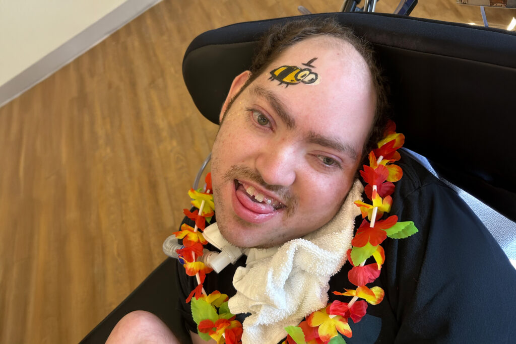 With attentive nursing care and compassionate support, Tommy continues to make meaningful progress. Recently, he has been working on turning his head from side to side so he can better see and hear the people around him, allowing him to engage more fully with those he loves.